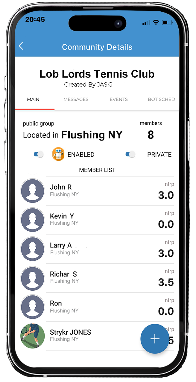 Our app's community features allows you to create your own local group. Giving you a platform that is dedicated to tennis and pickleball.
