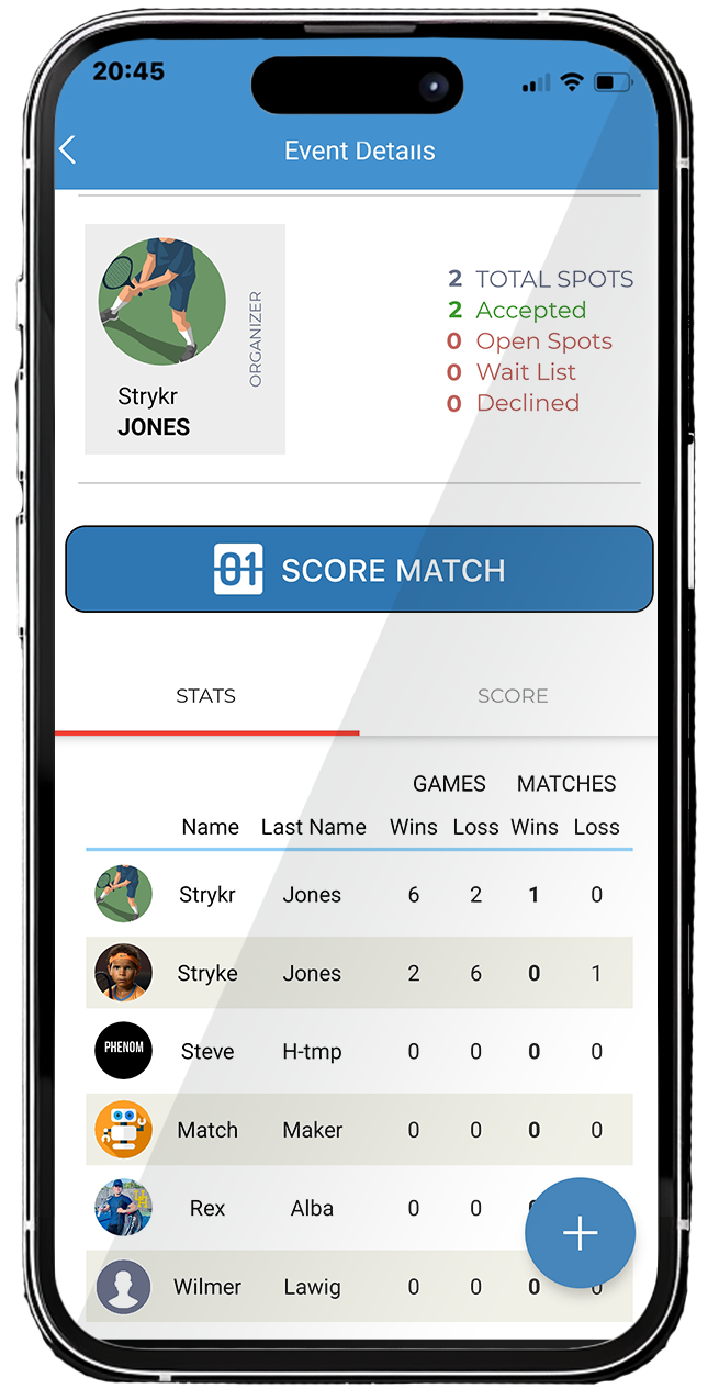 Our app's dynamic feature that automatically tallies up match results, distinguishing the day's champions and challengers. By meticulously entering your match scores in an event, our app effortlessly identifies and celebrates the most winningest player, bringing an exciting, competitive edge to every game. This unique capability not only fuels your competitive spirit but also offers a comprehensive view of performance, making every match count towards becoming the undisputed victor of the day. Perfect for players who love to keep the competition keen and their skills sharper.